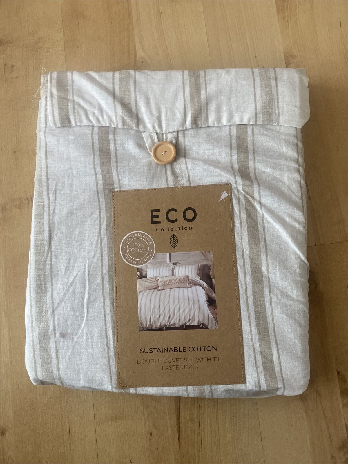 Eco Collection 💯 Cotton Stripe Double Duvet set 200x200cm Brown