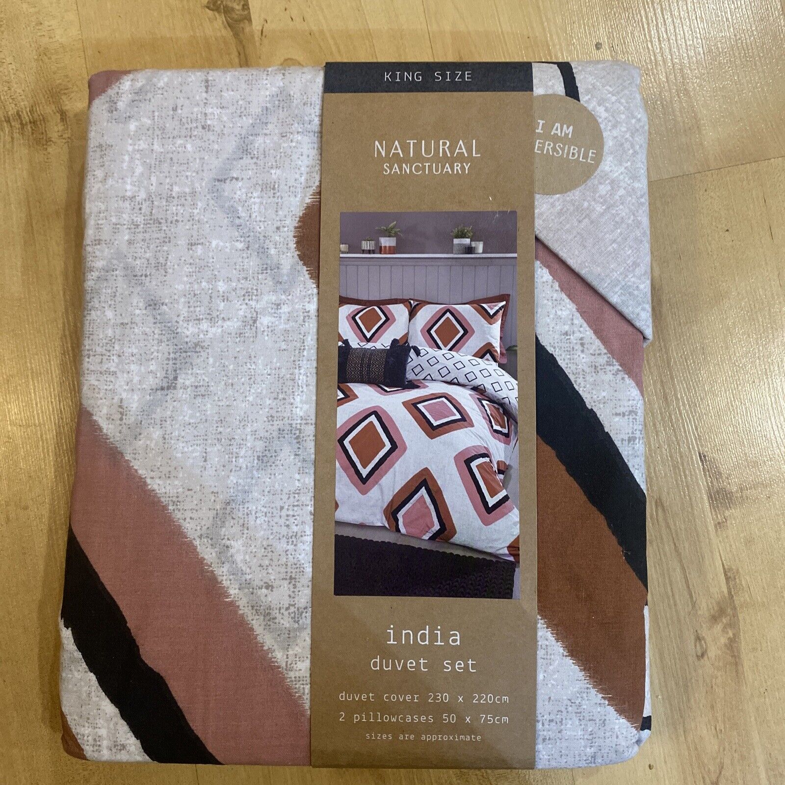 Natural Sanctuary India Kingsize Duvet set & 2 Pillowcases Reversible 230X220cm