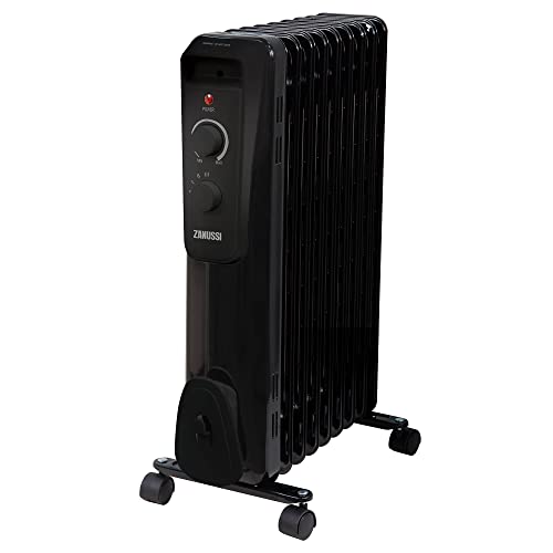 Zanussi 2000W/2KW Oil Filled Radiator, 9 Fin Portable Electric Heater - Black, Adjustable Thermostat with 3 Heat Settings, Safety Cut-off, 20 m sq Room Size, ZOFR5004B, 2 Year Guarantee