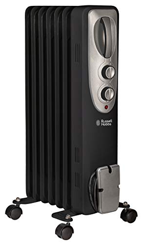 Russell Hobbs 1500W/1.5KW Oil Filled Radiator, 7 Fin Portable Electric Heater - Black, Adjustable Thermostat with 3 Heat Settings, Safety Cut-off, 15 m sq Room Size, RHOFR5001B, 2 Year Guarantee