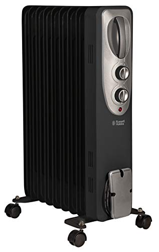 Russell Hobbs 2500W/2.5kW Oil Filled Radiator, 11 Fin Portable Electric Heater - Black, Adjustable Thermostat with 3 Heat Settings, Overheat Protection, 25m sq Room Size 2 Year Guarantee RHOFR1106B