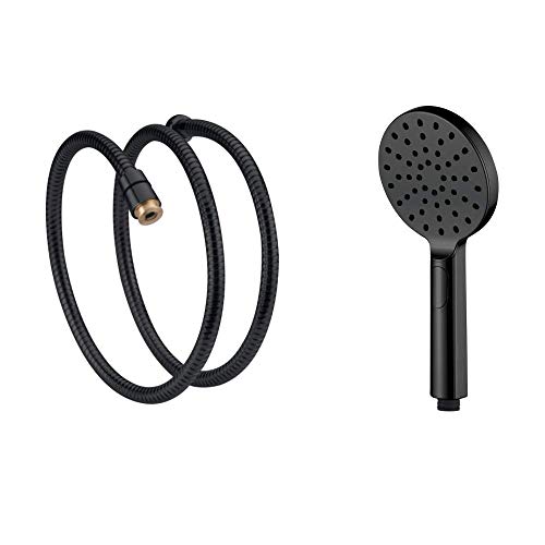 GRIFEMA G852B-18 PVC Smooth Black Universal Shower Hose 1.8m, Replacement Shower Pipe with Brass Connections, Flexible Anti-Twist