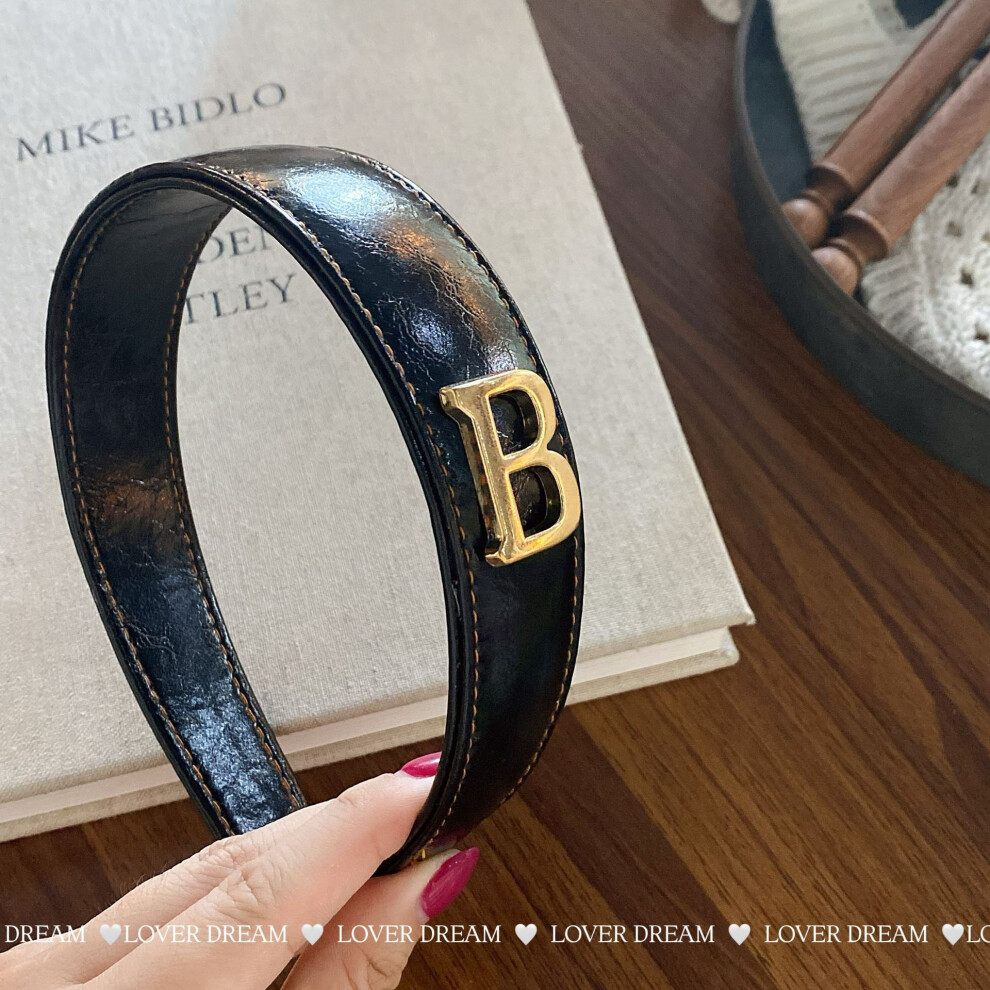 (Gold letter B black imitation leather high-end headband) New retro letter high-end imitation leather headband French fashion texture headband noble h