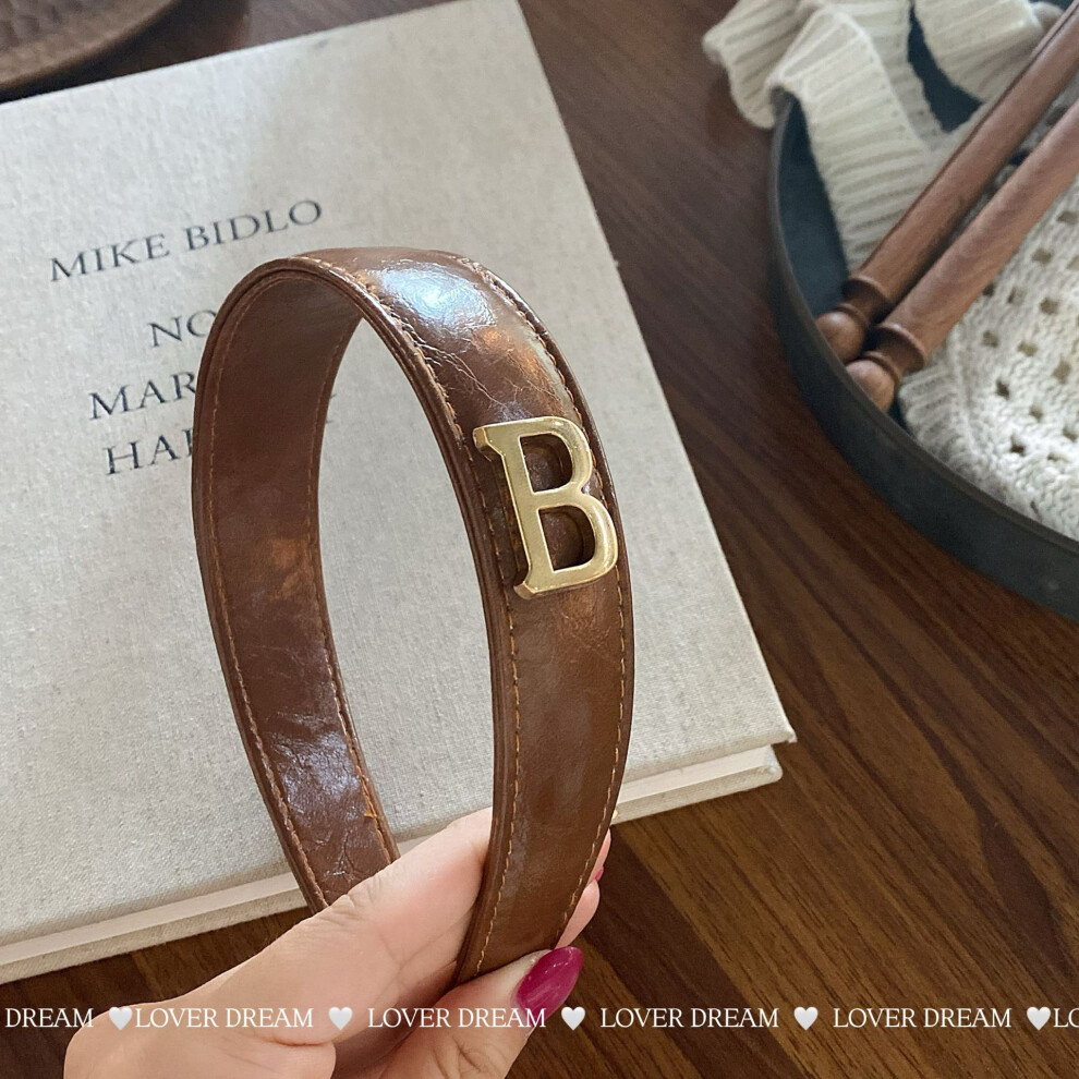 (Gold letter B brown imitation leather high-end headband) New retro letter high-end imitation leather headband French fashion texture headband noble h