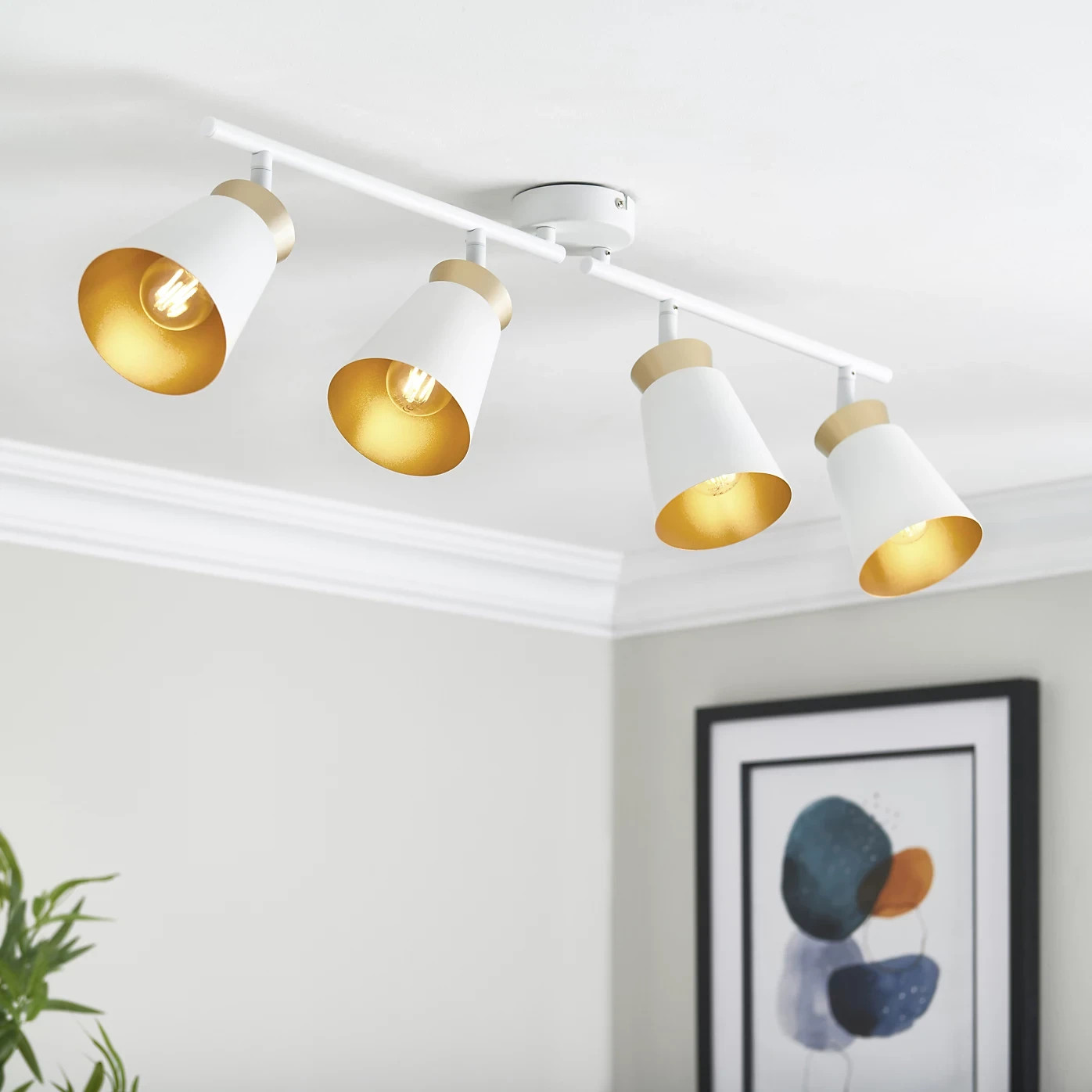 Faye 4 Light Spotlight Bar Ceiling Light Matte White Satin Gold Lining (New)