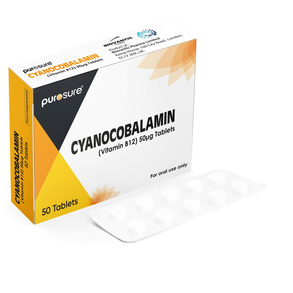 PuroSure Vitamin B12-50 Tablets (7 Weeks Supply) â Cyanocobalamin B12 50mcg Supplement - Contributes to The Reduction of Tiredness