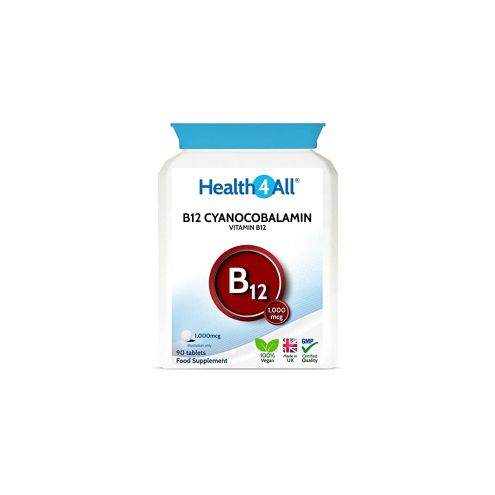 Health4All Vitamin B12 Cyanocobalamin 1000mcg 90 Tablets 3 Months Supply, High Strength Vitamin B12 Supplement, Contributes to The