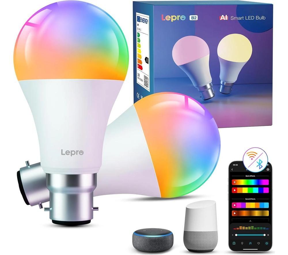LEPRO B1-UK-2 Smart AI LED Bulb - B22, White, Pack of 2