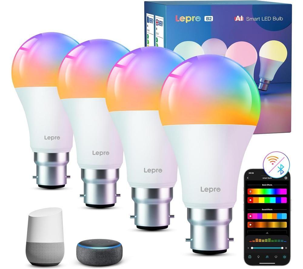 LEPRO B1-UK-4 Smart AI LED Bulb - B22, White, Pack of 4