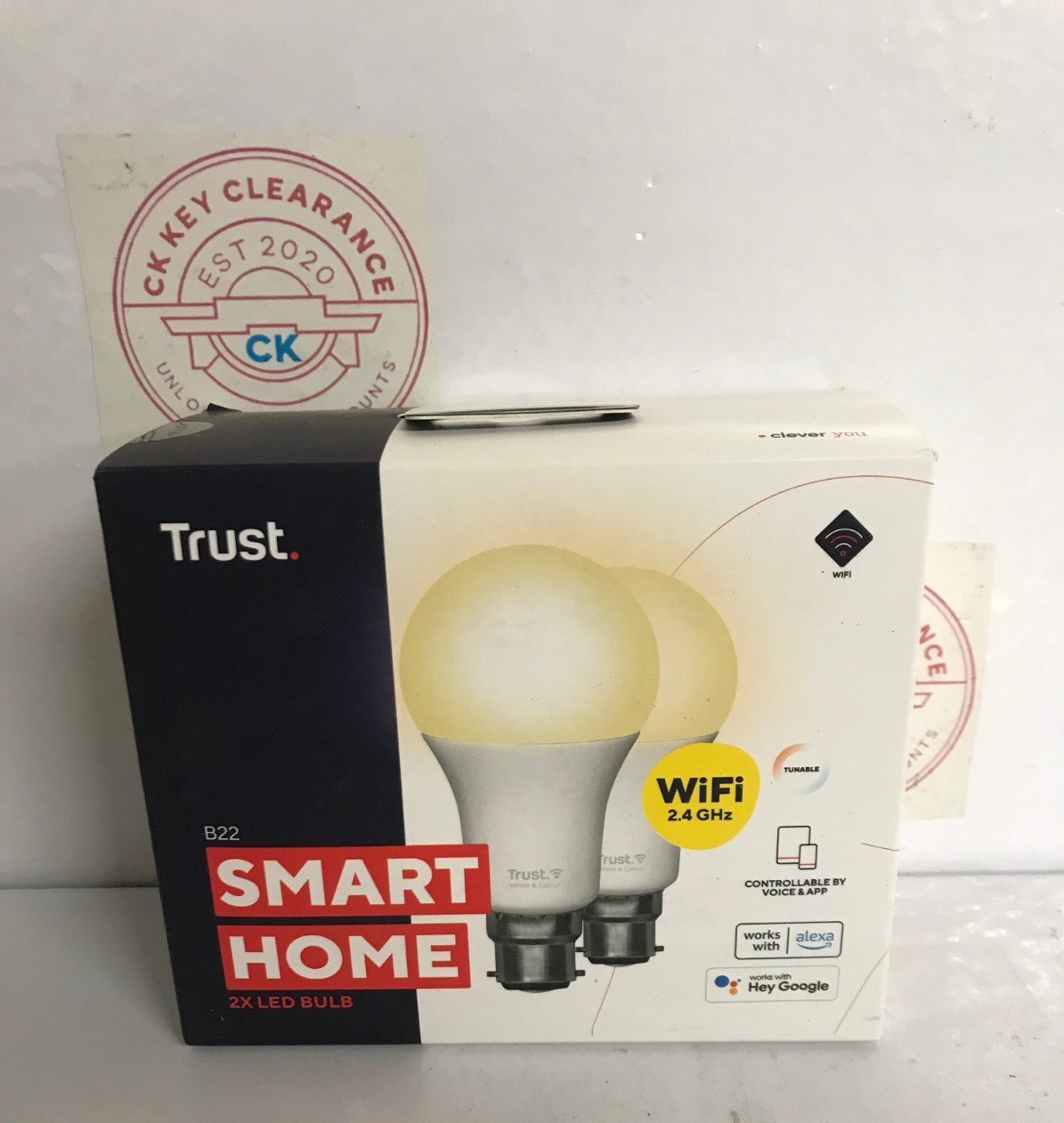 Trust B22 Smart Bulb, 2 Pack, Dimmable LED, Tunable White, 9W, 806 Lumens, 2.4GHz WiFi, Alexa & Google Home Compatible, No Hub Required