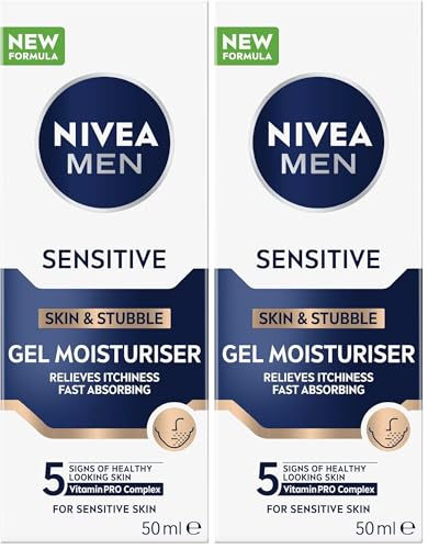 NIVEA MEN Sensitive Skin & Stubble Gel Moisturiser (50ml), Men's Face Cream for Daily Use, Gel Moisturiser with Vitamin E, Provitamin B5 and Chamomile Extract (Pack of 2)