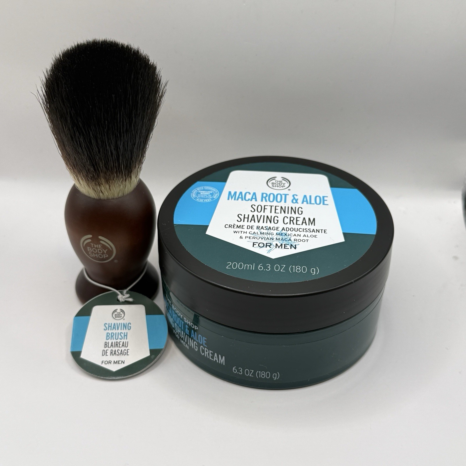 Body Shop Maca Root & Aloe Shaving Cream & Post-shave Water Gel & Shaving Brush