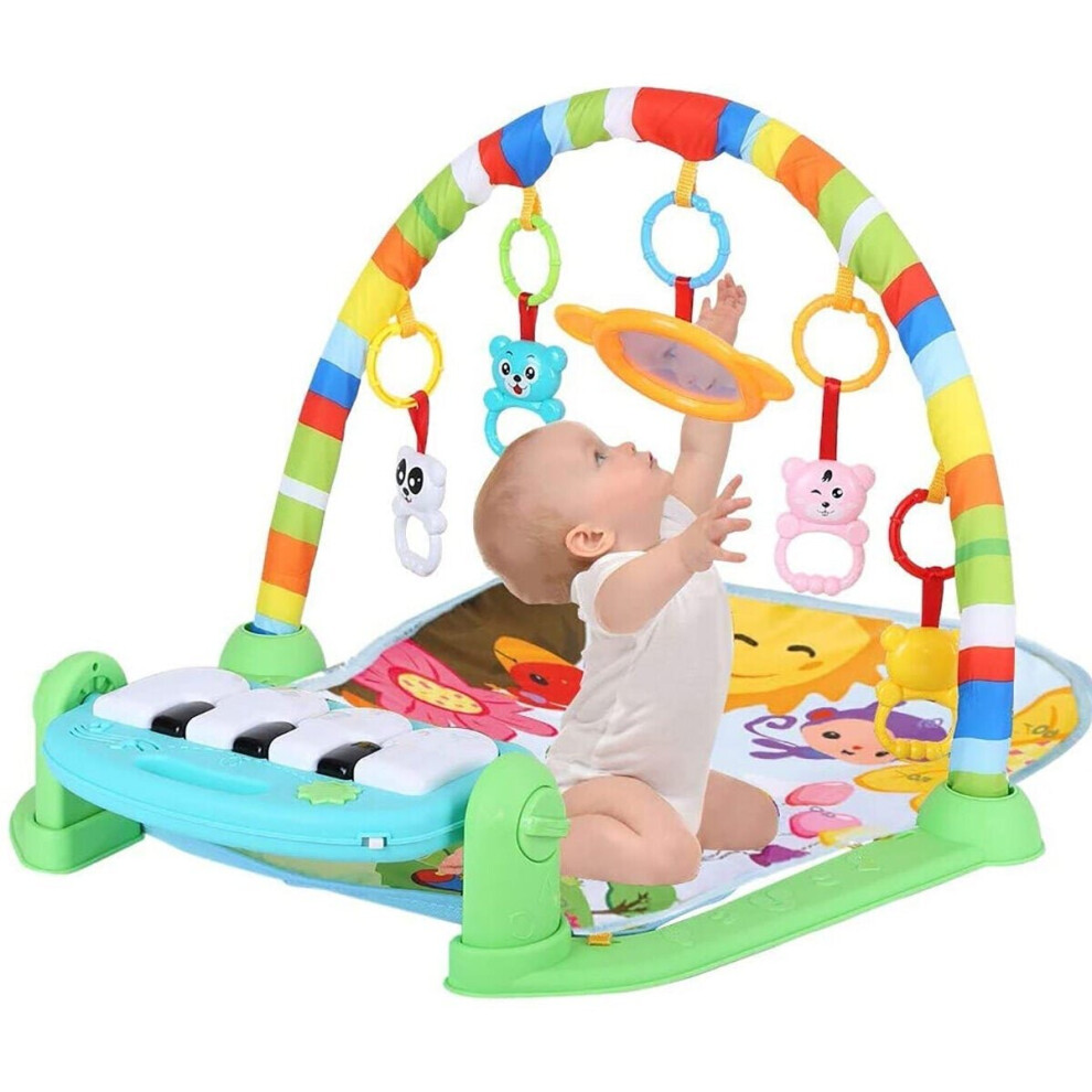 Suxdlan Baby Activity Center Gym Play Mat Music Light Rattle Pendant Removable Adjustable Board for Newborns Toddlers Green