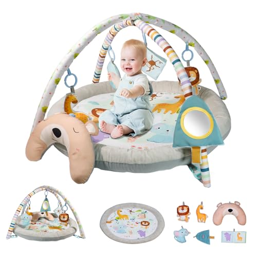 Dr.Rapeti Baby Play Mat, Activity Baby Play Gym with Arch, Playmats & Floor Gyms, Detachable Mirror and Soft Book, Thick Non Toxic Playmats