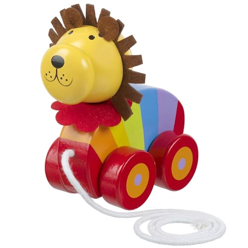 Lion Pull Along Toy - Animal Push and Pull Along Toys for 1 Year Olds, Toddler, Walker Wooden Toys - 1st Birthday Gifts for Baby Boys and Girls - Early Development & Activity Toys by Orange Tree Toys