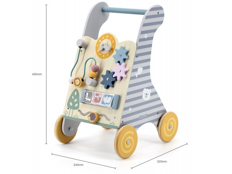 Small Foot 10745 Colourful Baby Walker, made of wood, multifunctional motor activity toy, w/rubber-finished wheels
