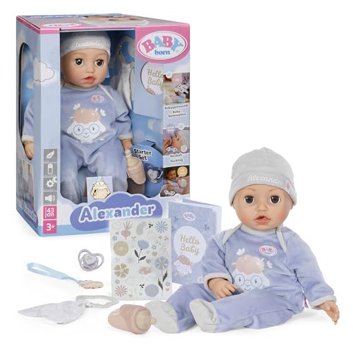 BABY born Alexander 43cm, soft 43cm doll with 7 electronic functions and sound for children from 3 years, incl. Accessories