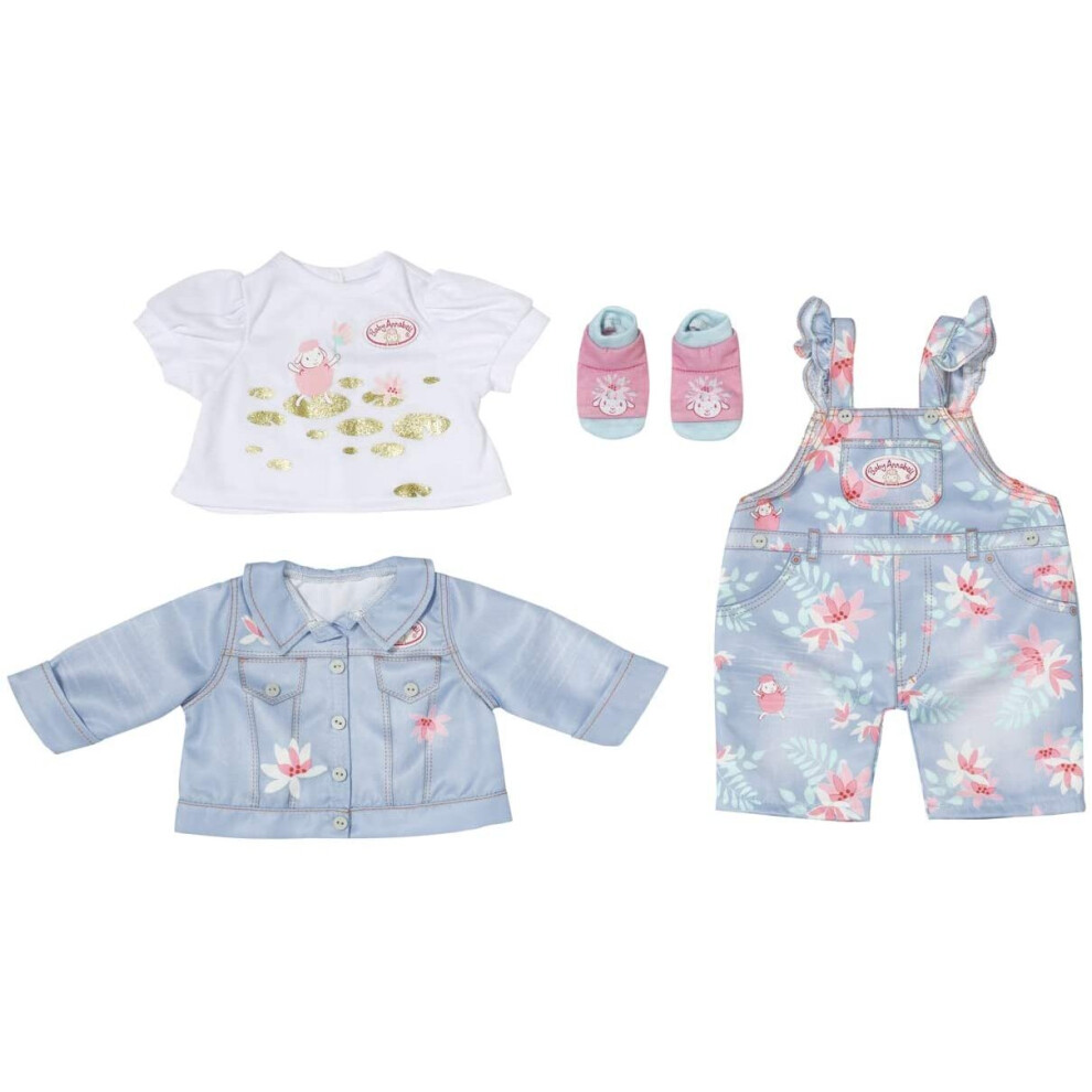 Baby Annabell Active Deluxe Jeans Set 43cm - Floral Pattern - Easy for Small Hands, Creative Play Promotes Empathy & Social Skills, For Toddlers 3 Years & Up - Includes Dungarees, Jacket & More