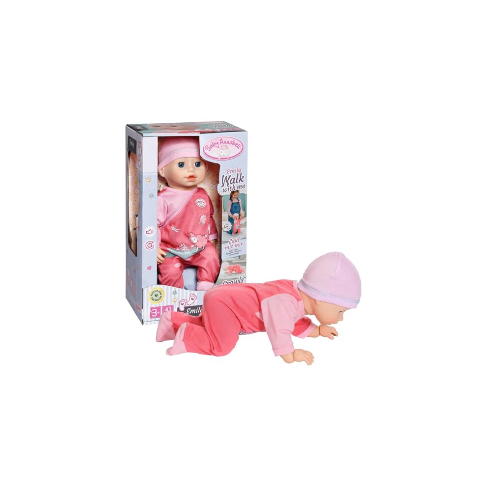 Baby Annabell Emily Walk with Me 710623 - 43cm Doll with Pink Romper and Hat - Requires 3 AAA Batteries (Not Included) - Suitable for Kids From 3+