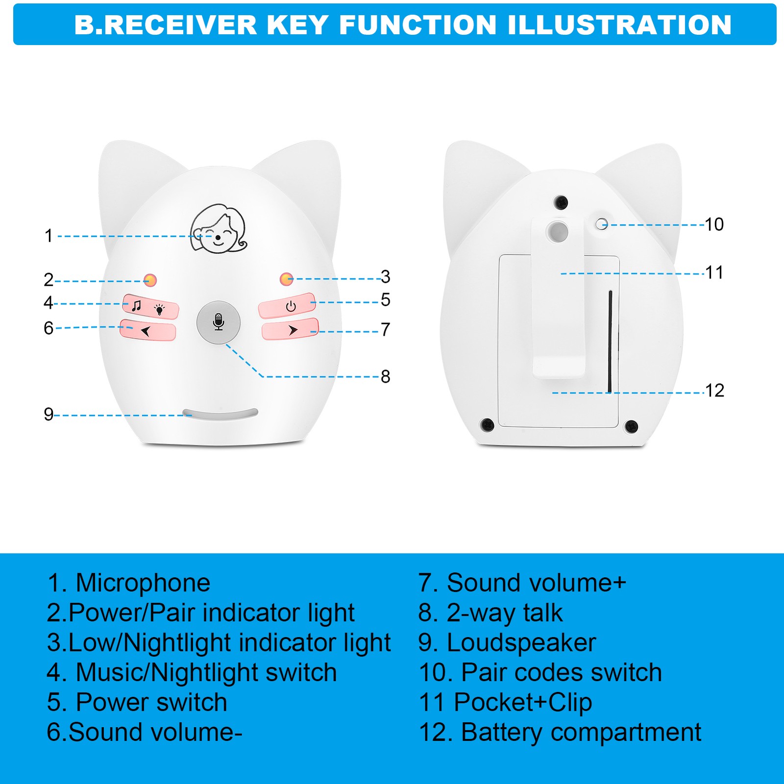 Wireless 2.4GHz Digital Audio Baby Monitor Sensitive Transmission Voice Two BL