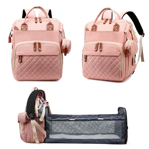 Topchances Baby Diaper Backpack,Neutral All-in-One Baby Bags for Multifunction Large Nappy Back Pack with Portable Changing Mat Buggy Straps,Waterproof Diaper Bags,Travel for Mom and Dad (Pink)