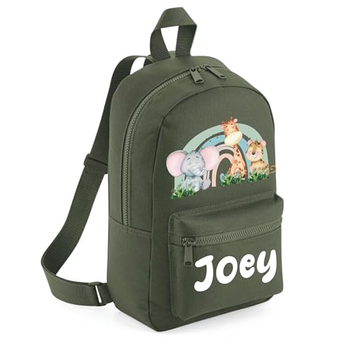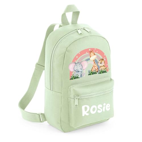 The Baby Box UK Personalised Girls Backpack Toddler Safari Rainbow Back Pack Childrens Rucksack (Pistachio)