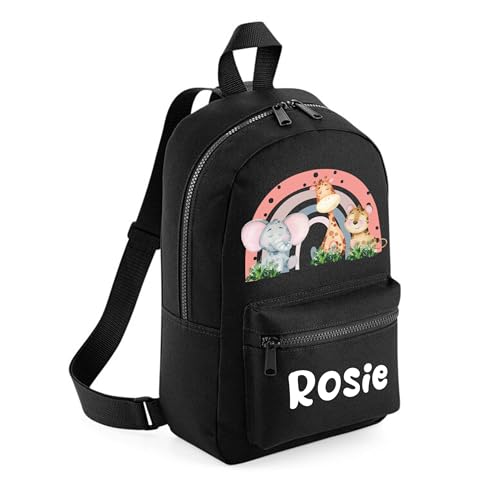 The Baby Box UK Personalised Girls Backpack Toddler Safari Rainbow Back Pack Childrens Rucksack (Black)