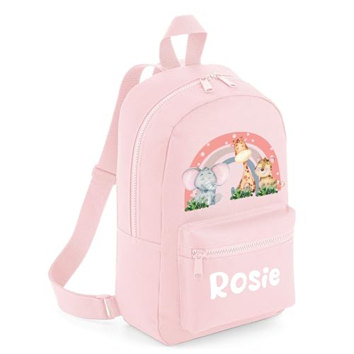 The Baby Box UK Personalised Girls Backpack Toddler Safari Rainbow Back Pack Childrens Rucksack (Powder Pink)