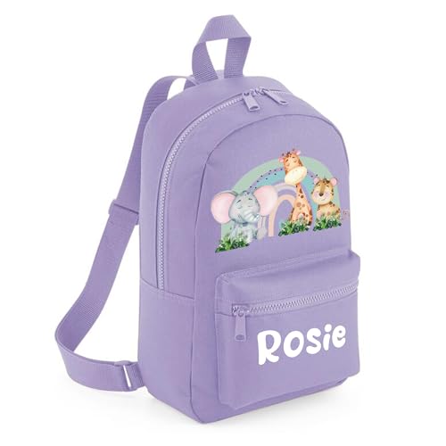 The Baby Box UK Personalised Girls Backpack Toddler Safari Rainbow Back Pack Childrens Rucksack (Lilac)