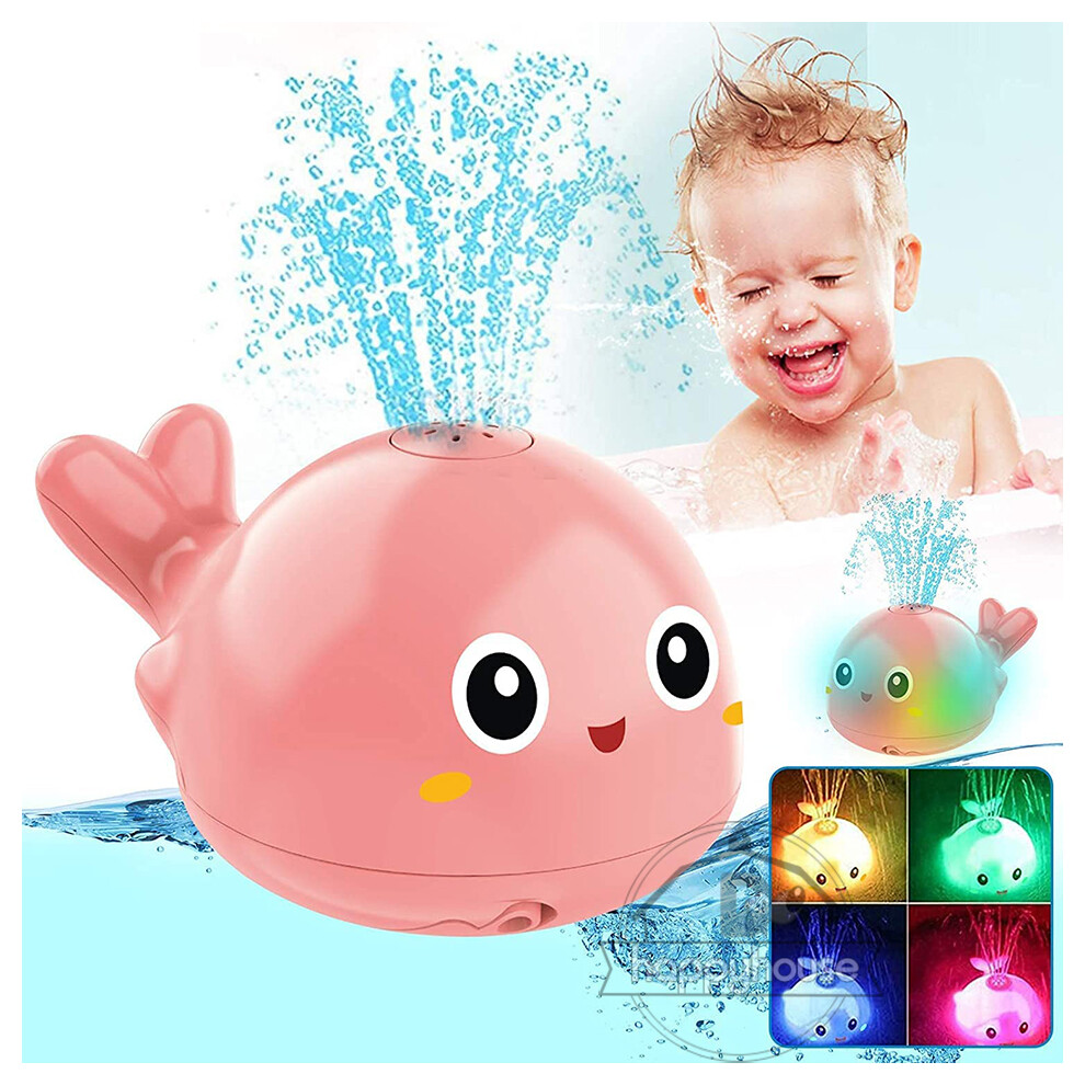 (Pink no base no box) Baby Bath Toys Spray Water Shower Bathing Toys for Kids Electric Whale Bath Ball with Light Music LED Light Toys