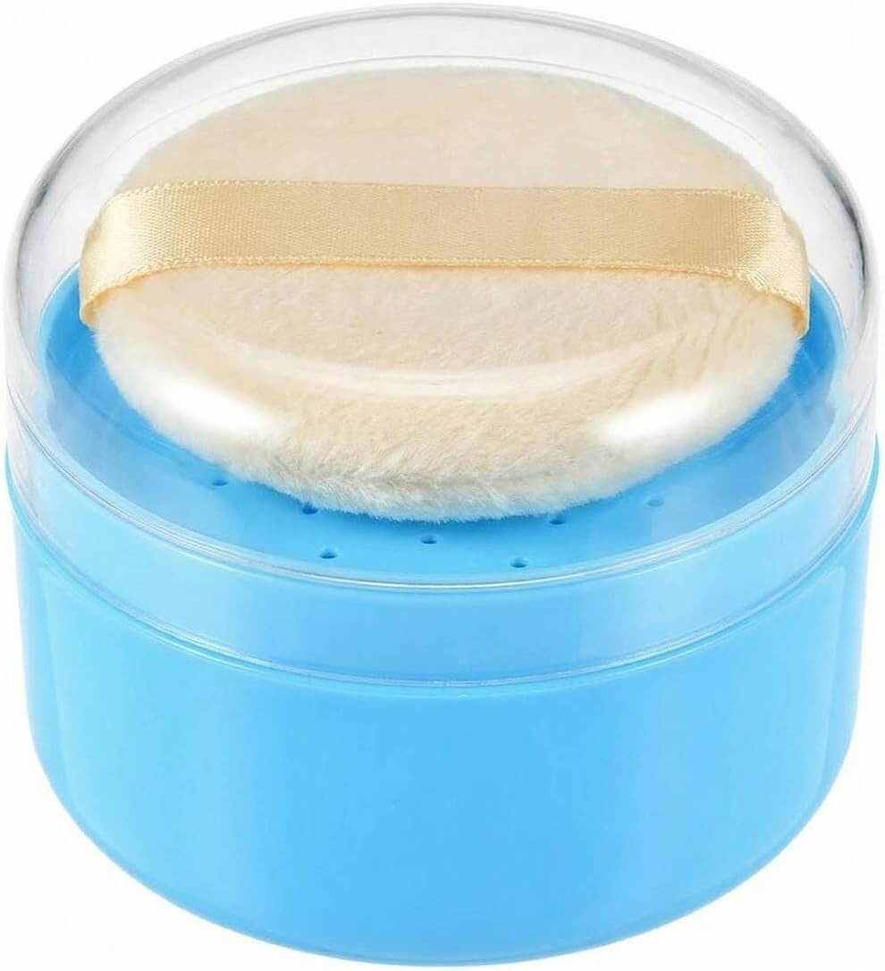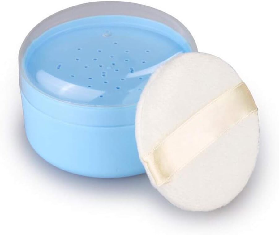 Talcum Powder Puff Box,Baby After-Bath Powder Puff Box Empty Body Powder Container,with Powder Puffs and Sifter,Perfect for Travel,Blue