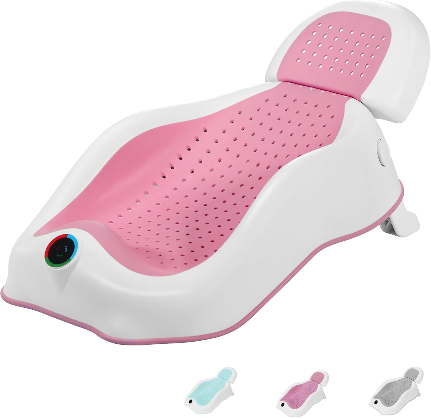 Baby Bath Seat Newborn Bath Seat with Thermometer,Foldable Baby Bath Support 0-6