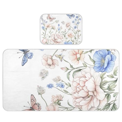 Pinkish-Blue Peony Flower Butterflies Cooling Baby Washable Mattress 28" x 52" Ultra Soft Pads for beds for Kids, Adult