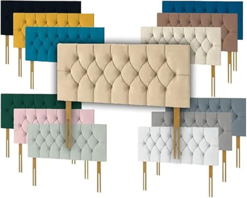 Divan beds Headboard Portland Elegant Chesterfield Plush Velvet 20" Height Padded Lined Headboard Padded Panelled Headboard (Baby pink, 5FT King Size)