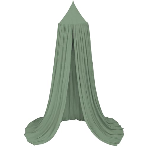 Aolso Kids Bed Canopy for Girls and Boys,Canopy Bed Curtains with Round Dome,Nursery Curtains for Kids Beds,Princess Beds,Baby Room,Reading Corner-Crepe(Green)