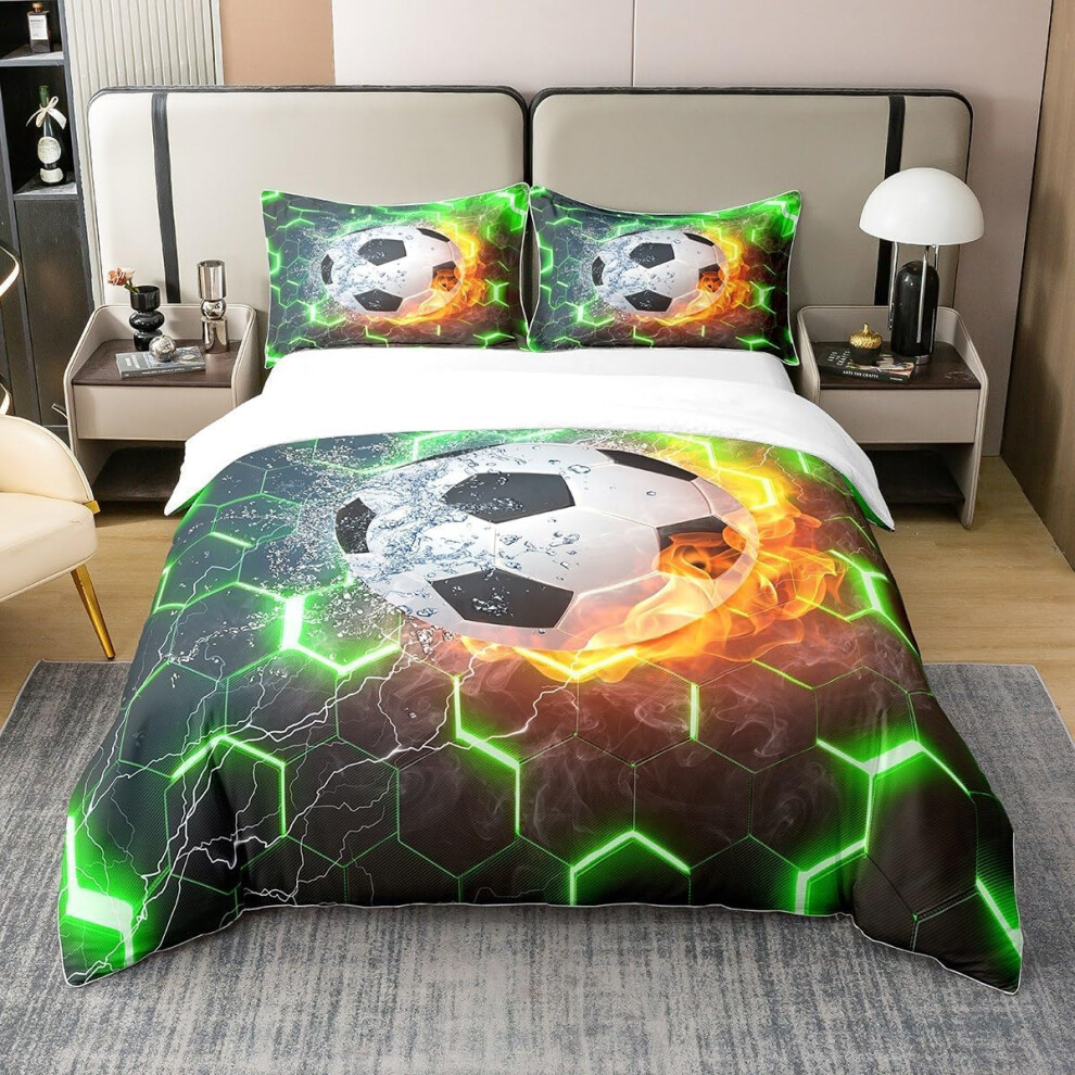 Football Kids Bedding 100x135 cm Microfiber Duvet Cover Set Black Flame Football Pattern for Toddlers and Baby Beds