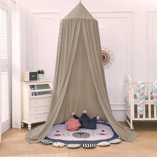 Aolso Kids Bed Canopy for Girls and Boys,Canopy Bed Curtains with Round Dome,Nursery Curtains for Kids Beds,Princess Beds,Baby Room,Reading Corner-Cotton(Linen)