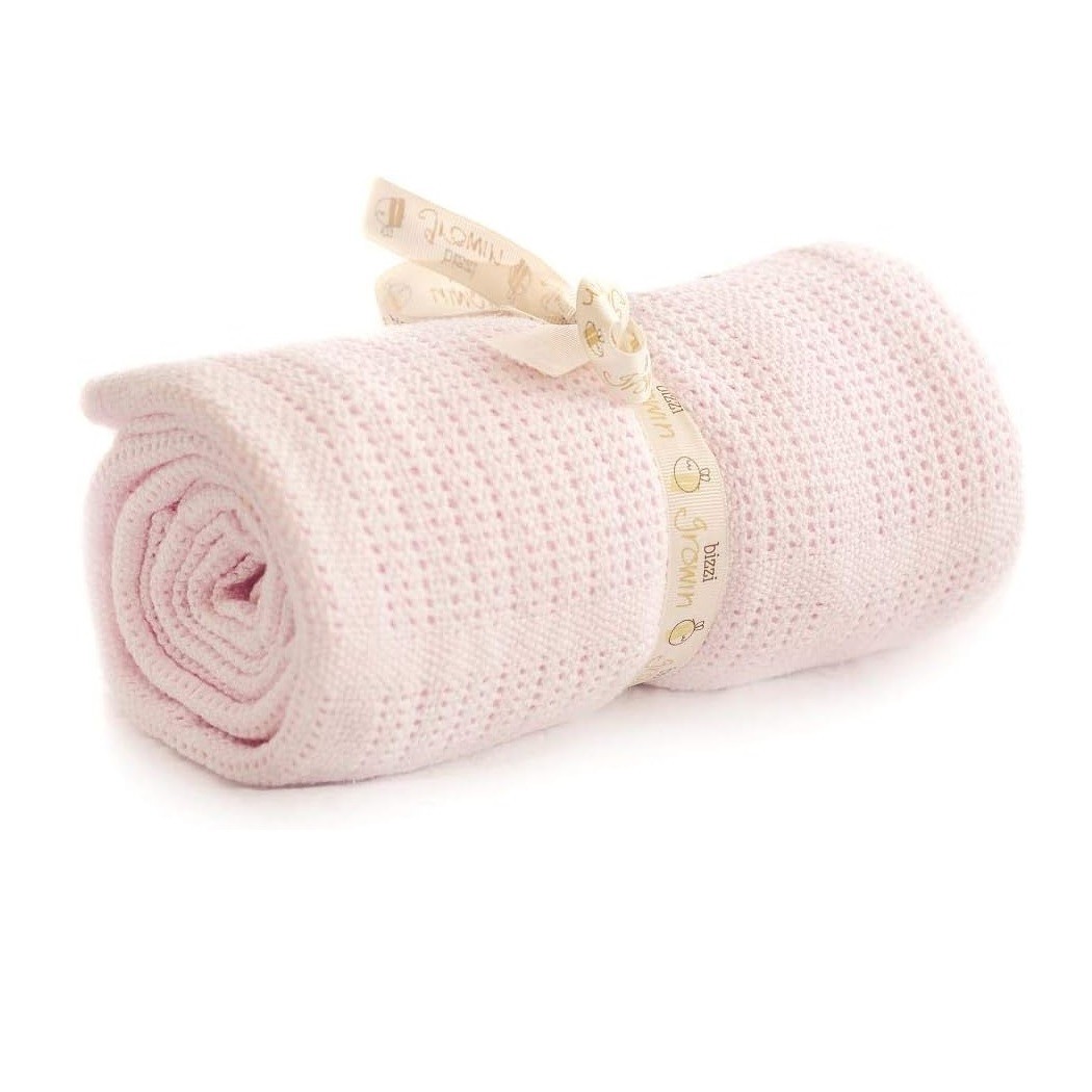 Bizzi Growin Cellular Blanket for Baby Cot Beds - 100% Cotton - 150x100cm - Pink