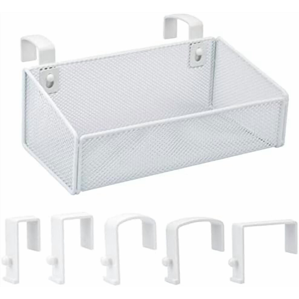 Hanging Bedside Caddy Basket â Metal Organizer for Dorm, Hospital & Baby Beds â Holds Magazines, Remotes, Phones, Drinks (White)