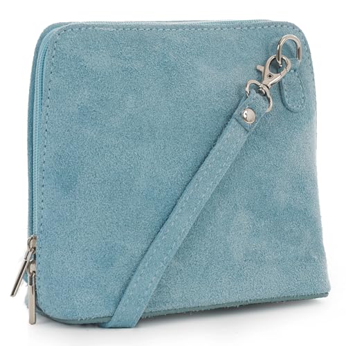 LiaTalia Stylish Genuine Italian Leather Small Crossbody Bag for Women - Handmade in Florence Tuscany - Abby [Suede - Baby Blue]