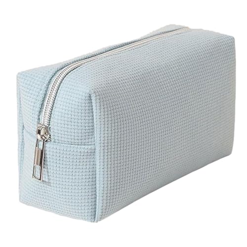 Baby Blue Travel Makeup Bag for Women and Girls, Small Toiletry and Cosmetic Wash Bag, Corduroy Portable Makeup Pouch with Zipper, Mini Toiletry Organizer for Handbags, Suitcases and Everyday Travel