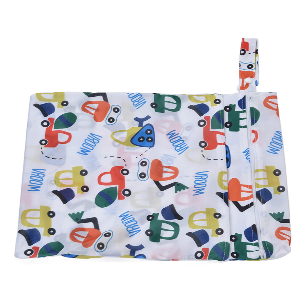 Waterproof Reusable Baby Diaper Bag Blue Car Cartoon Pattern, Durable Polyester