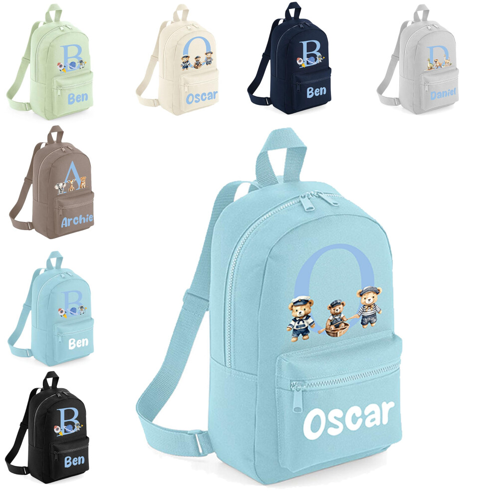 The Baby Box UK Personalised Boys Rucksack Backpack Bag Dinosaurs Bears Animals Space Mini School Club Nursery (Powder Blue)