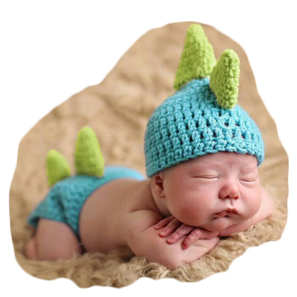 born Photography Props Dinosaur Outfit Photo Prop Dino Helmet Hat Diaper Cover Baby Photoshoot Crochet Costume