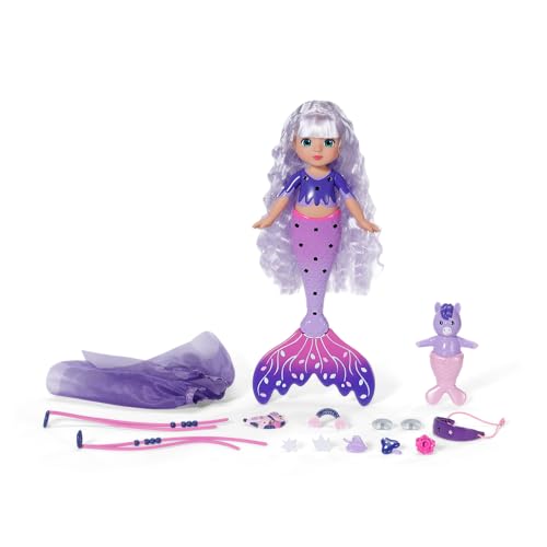 BABY born Glam Up Aura, mermaid with long purple hair with UV color effect, for styling with fabric accessories and pins incl. animal friend