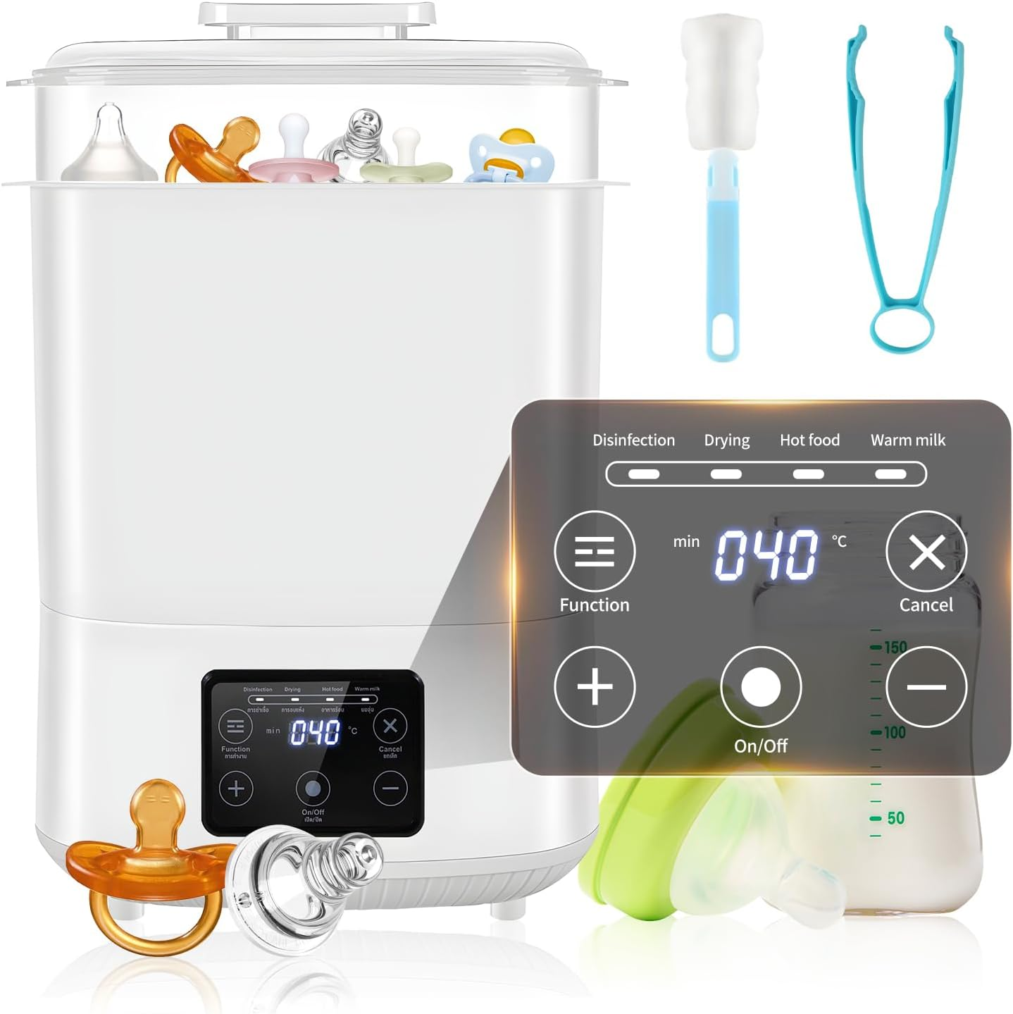 4-In-1 Baby Bottle Steriliser and Dryer Holds 8 Bottles and Pacifiers, Electric