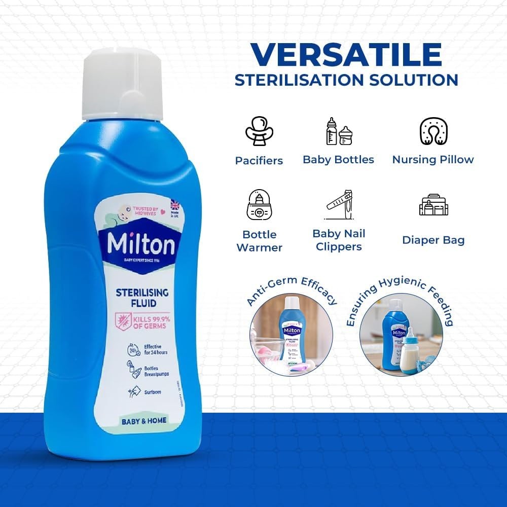 2 x Milton Sterilising Fluid 500ml Baby Bottle Cleaner Cold Water Steriliser Ideal for Breastpumps Surfaces Home Soothers Toys Anti-Germ Efficacy