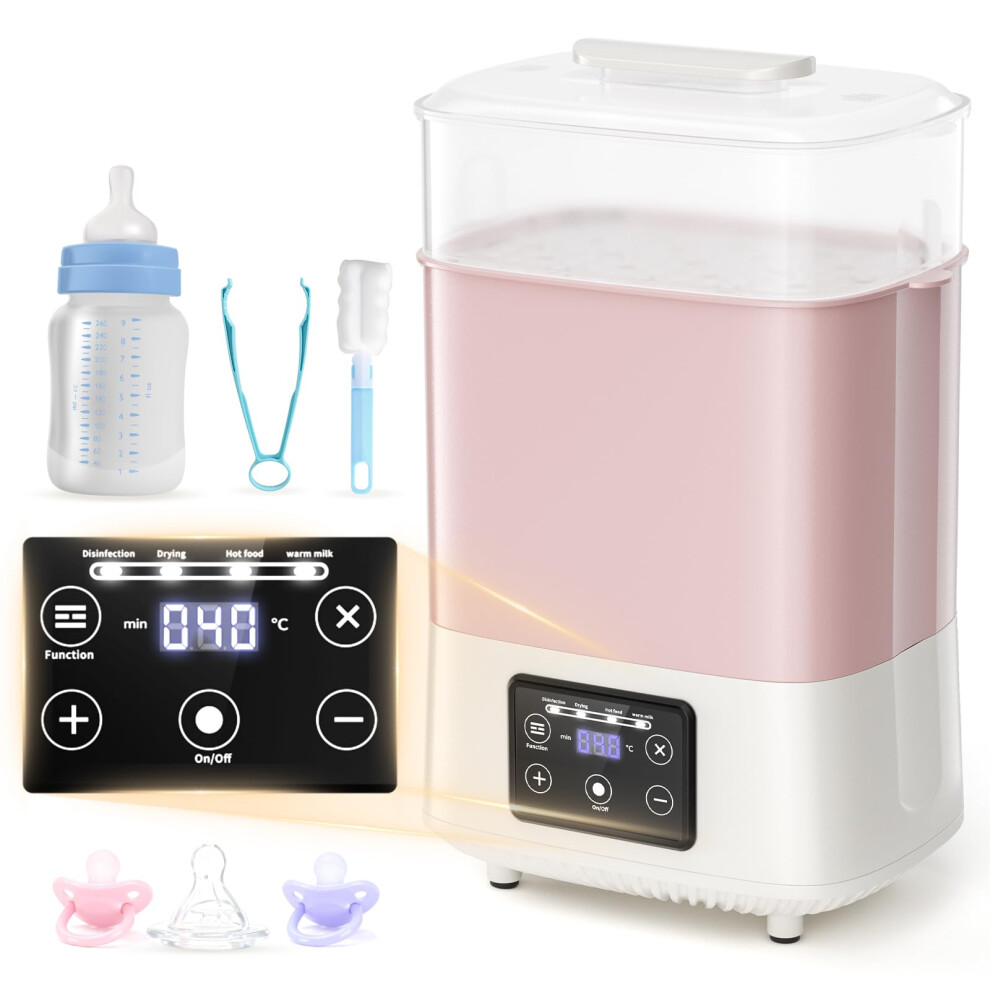 Kidken Baby Bottle Steriliser and Dryer, Large Size Hold 8 Bottles and Pacifiers, 4-in-1 Electric Steam Steriliser for Baby Bottles,Breast Pump Parts,Teething Toys,Milk & Food Warmer (Pink)