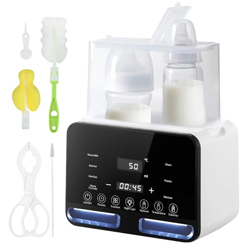 Baby Bottle Warmer, 9 in 1 Double Bottle Sterilizer with LCD Display, Fast Baby Food Heating & Defrost for Breastmilk or Formula, 48H Keep Warm Smart Temperature Control, Night Light, Timer, BPA-Free