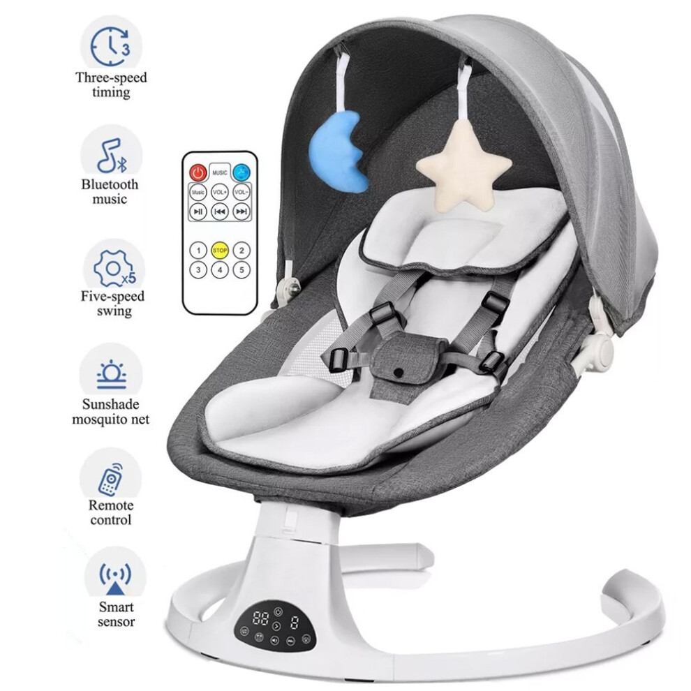 Bluetooth Electric Baby Rocker Swing Infant Bouncer Chair Music Gray